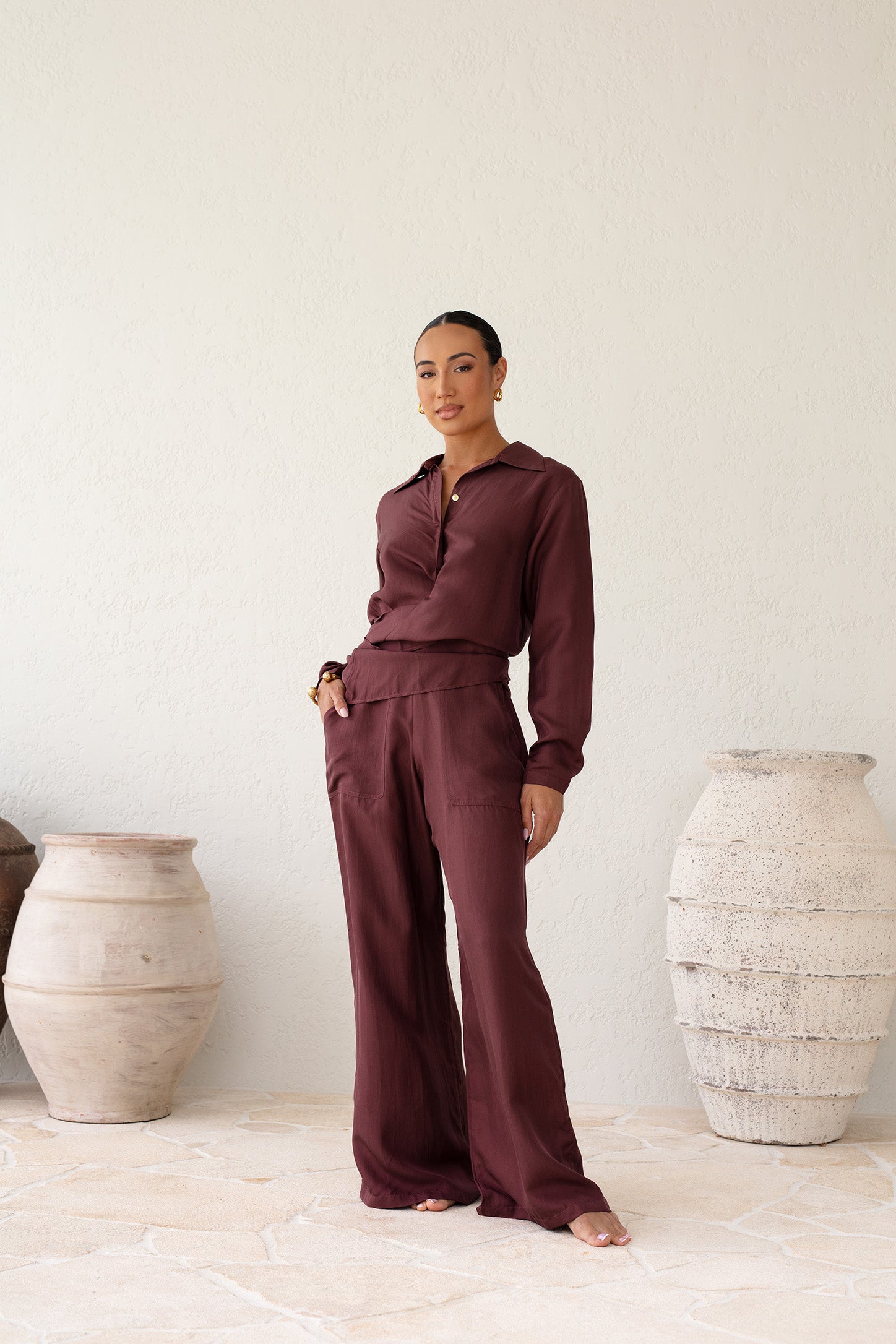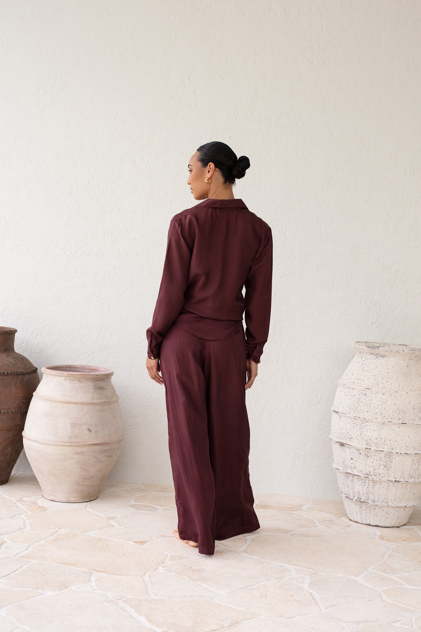 Our new Silk Wide Leg Trouser is the perfect meeting of comfort and style. Drop crotch and loose fit, they're the ultimate in style and sophistication. Made from 100% silk, they're ideal for summer nights, dress up or down. Now available in our rich bold and best selling bespoke colour Bakery.